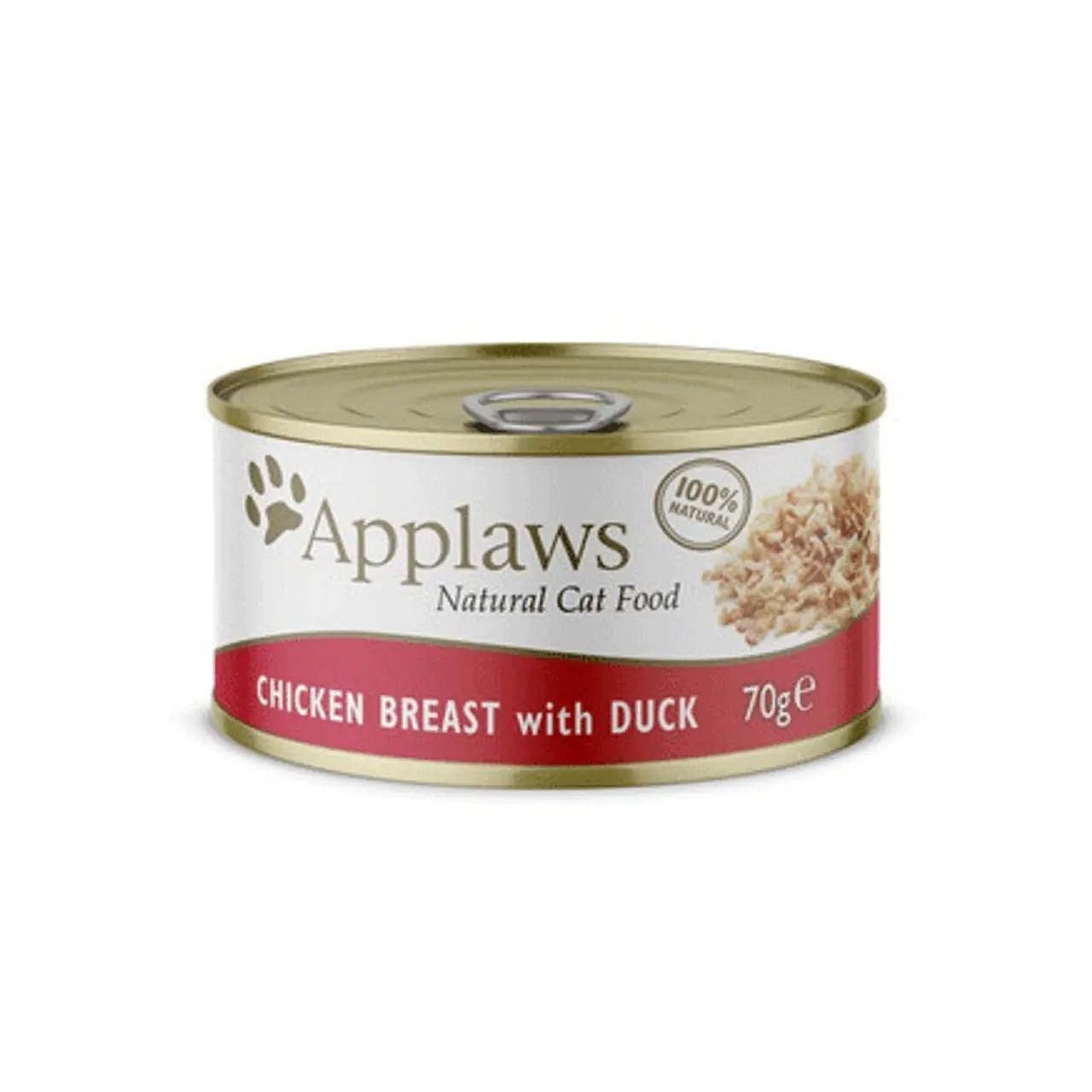 Indulge your pet with the exceptional taste and nourishment of Applaws Chicken with Duck in Broth; a 70g tin brimming with delectable flavors and optimal nutrition.