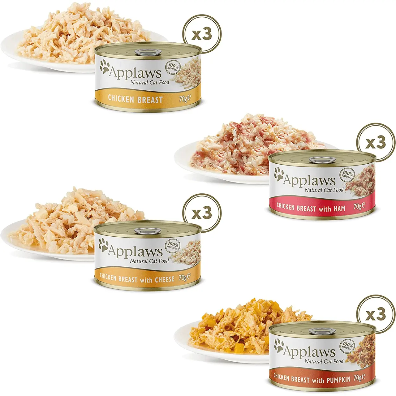3xChicken Breast with Pumpkin: Chicken Breast 50%, Chicken Broth, Pumpkin 24%, Rice.