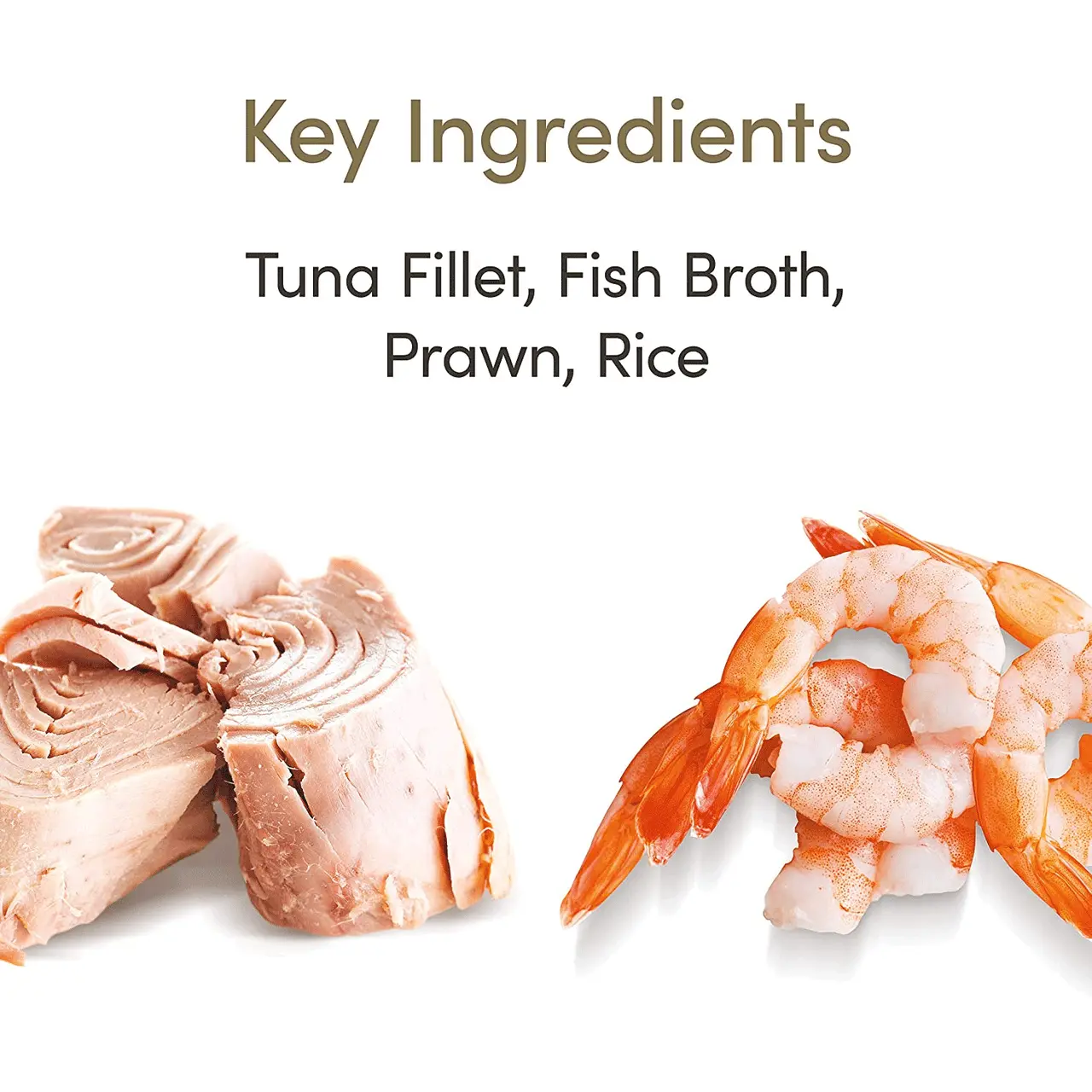 Tuna Fillet 52%, Fish Broth, Prawn 23%, Rice.