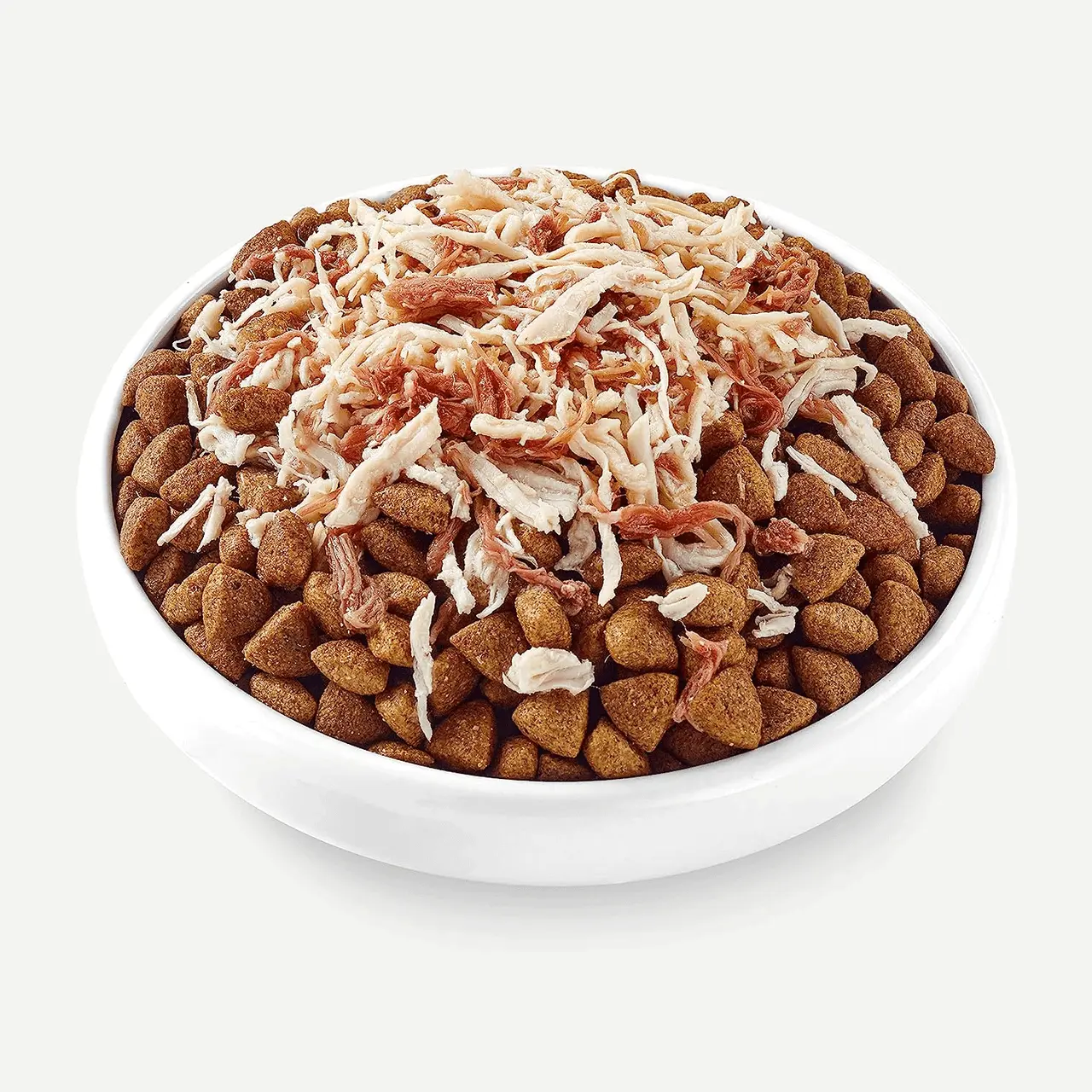Our Taste Toppers introduce delightful textures and essential moisture that turn their meals into a delectable feast. We prioritize natural ingredients that you would happily consume, ensuring your furry friend enjoys the flavors and textures they adore.