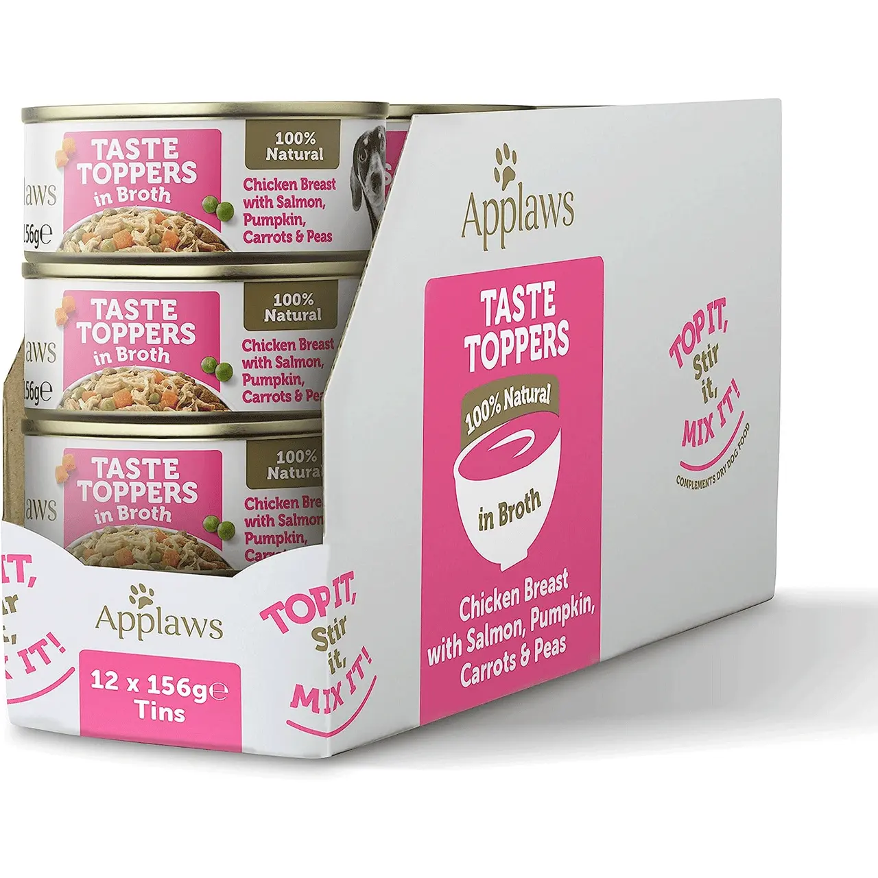 Elevate Mealtime Delights: Applaws Taste Toppers – Chicken Breast with Salmon, Pumpkin, Carrots & Peas in Broth Tin