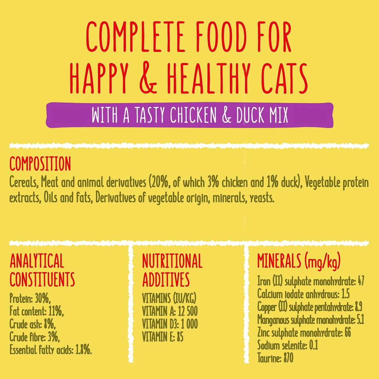 100% complete and balanced tasty nutrition for every day with quality protein for the cats’ health and happiness
