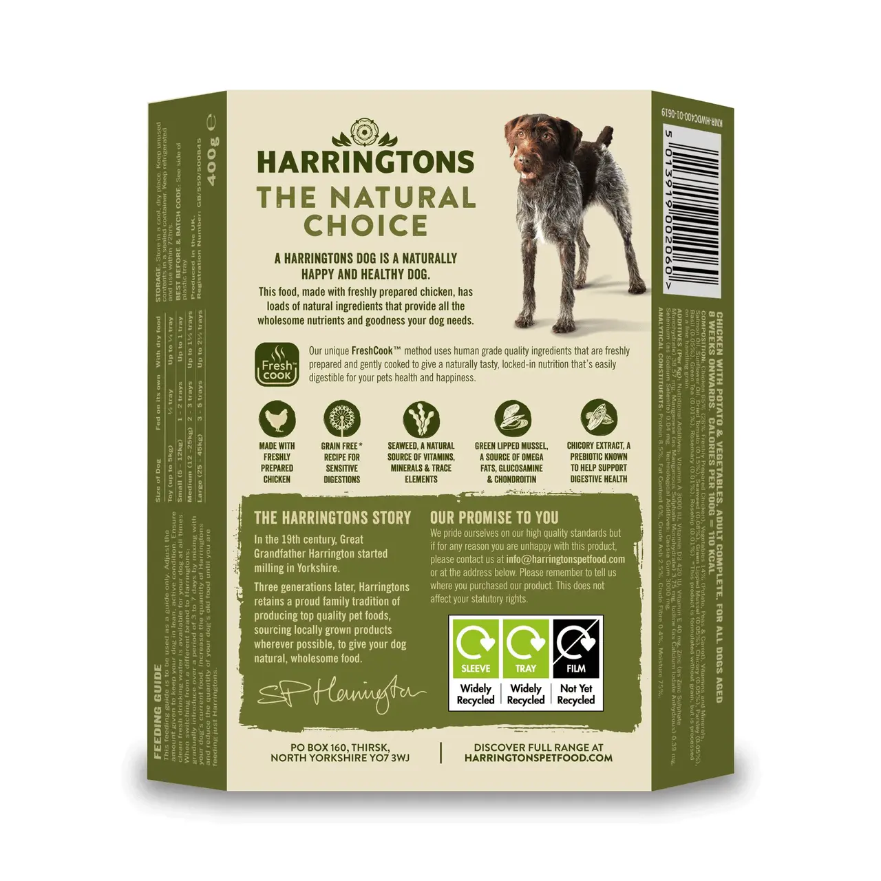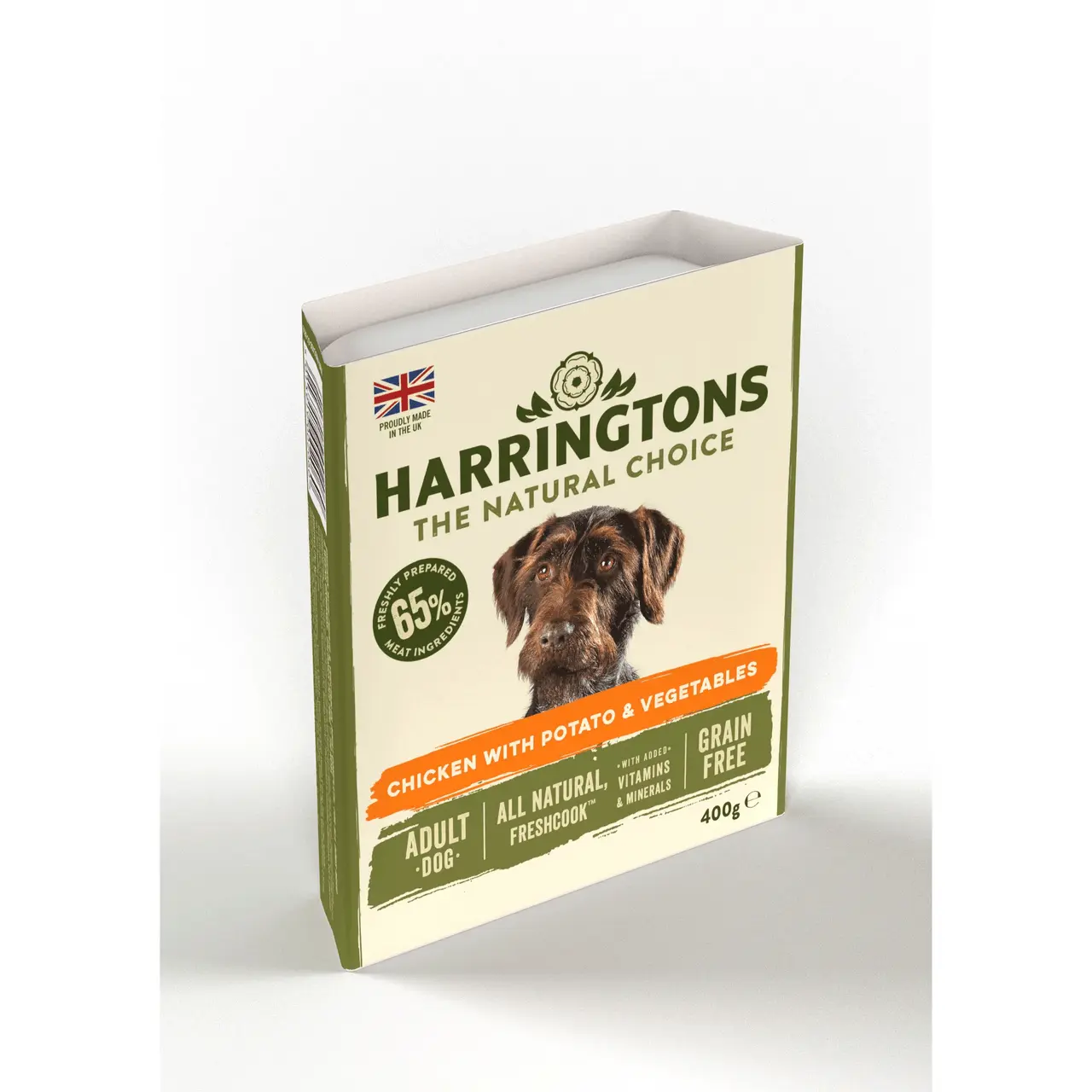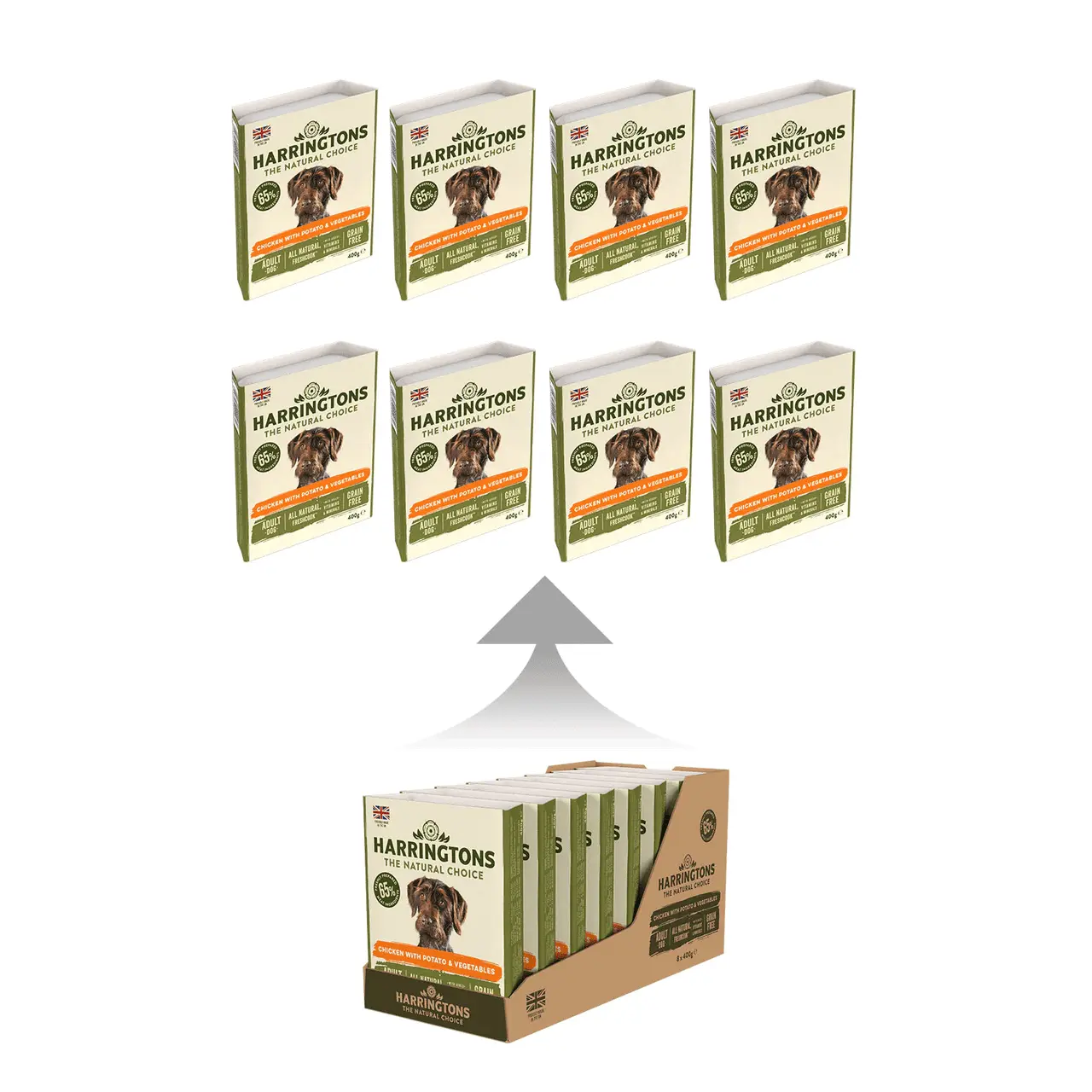 Harringtons Chicken With Potato & Vegetables Wet Dog Food is a complete pet food providing balanced nutrition for all adult dogs.