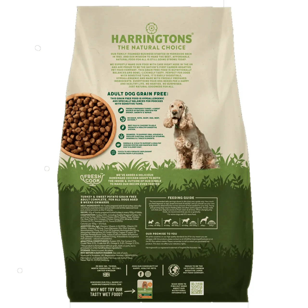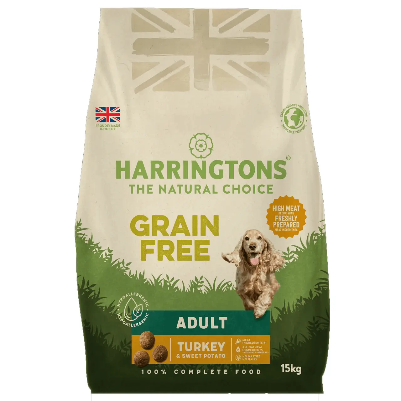Harringtons Grain Free Turkey & Sweet Potato is a complete pet food that can be fed to all dogs from 8 weeks onwards.