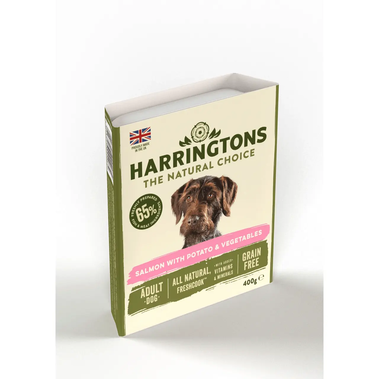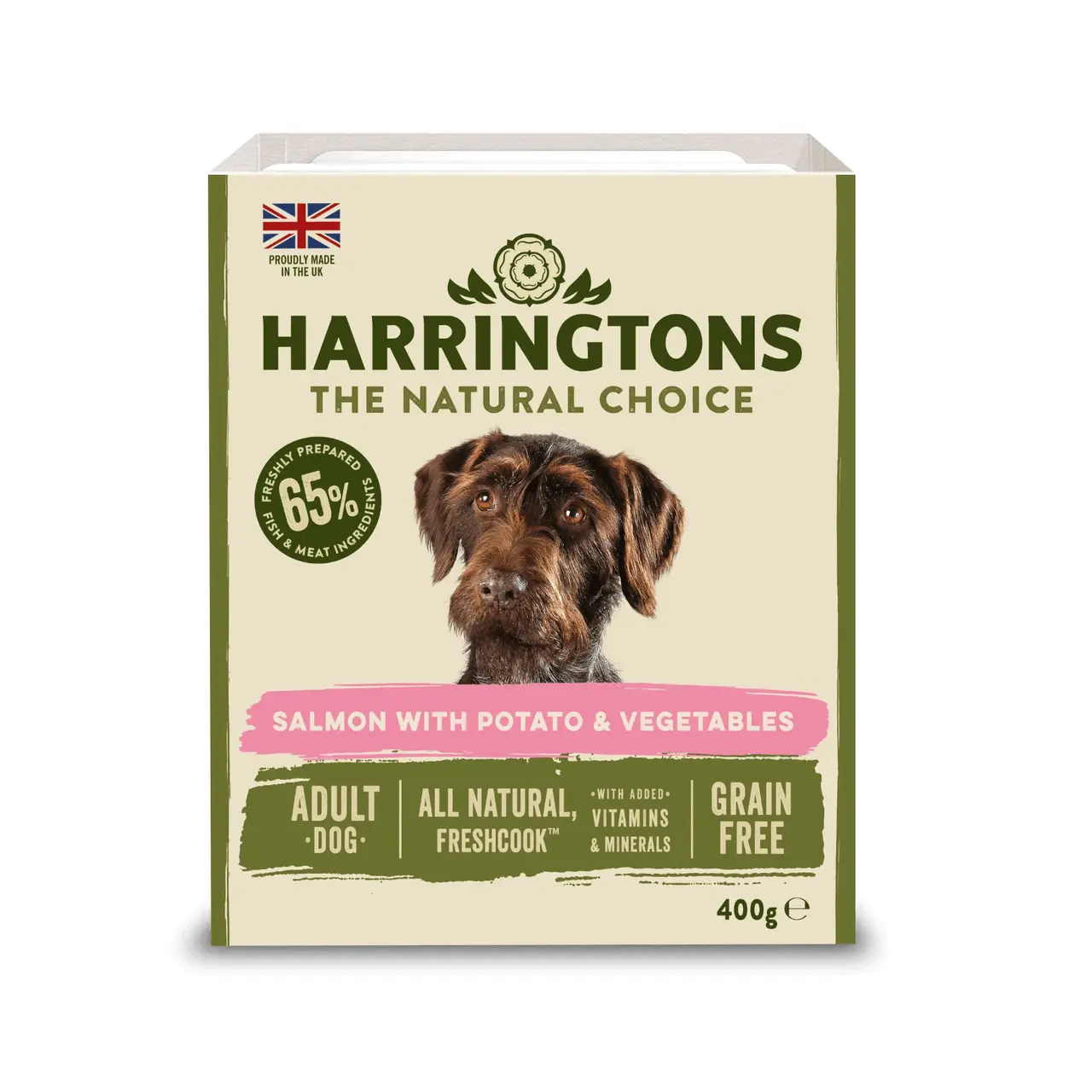 Harringtons Salmon With Potato & Vegetables Wet Dog Food is a complete pet food providing balanced nutrition for all adult dogs.