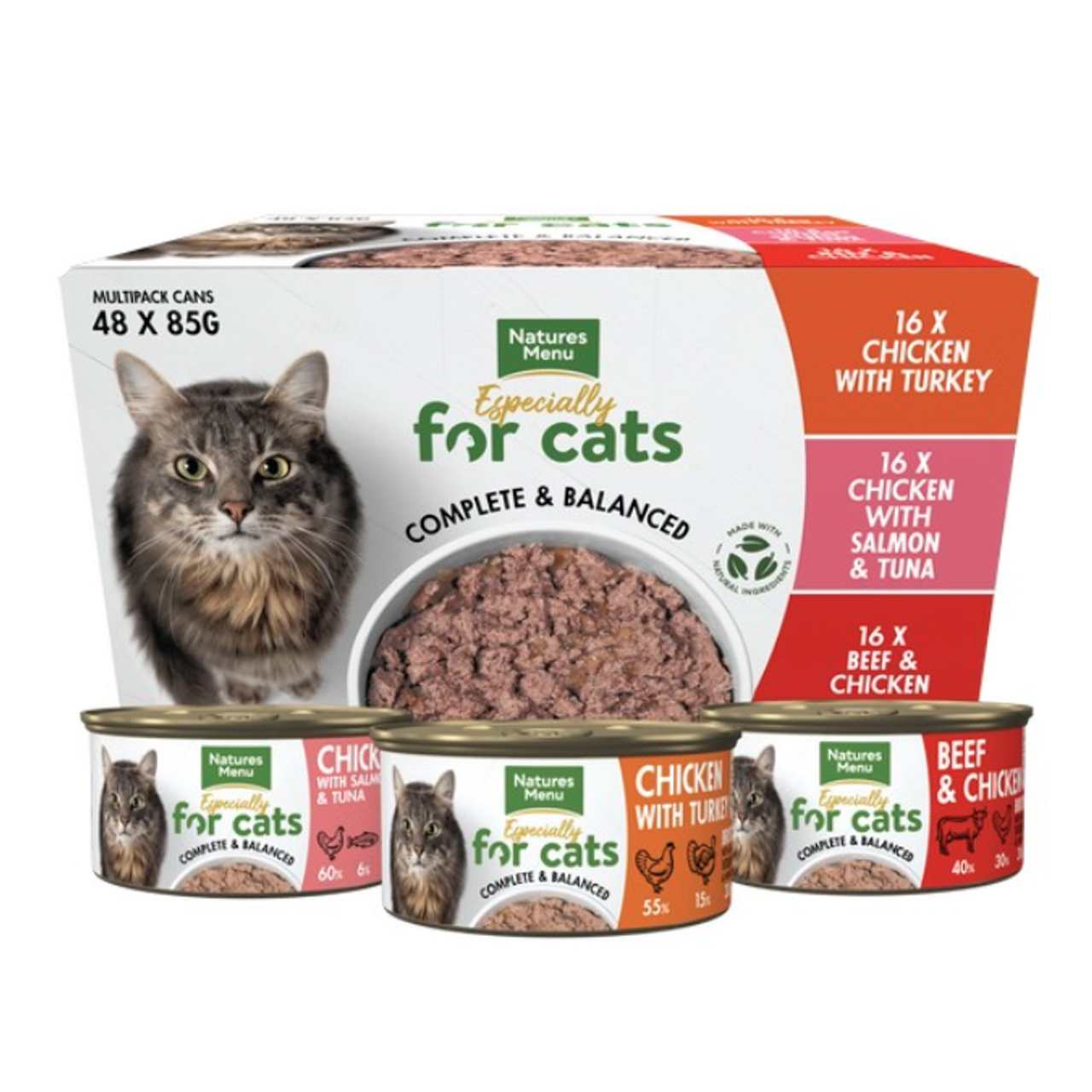 Does your cat love Natures Menu Especially for Cats? Well, they’ll love our meaty multipack canned cat food includes all three natural meal varieties from our complete and balanced range for adult cats. Cats need a high meat quality diet to help them thrive – and that’s exactly what is in each of our recipes.