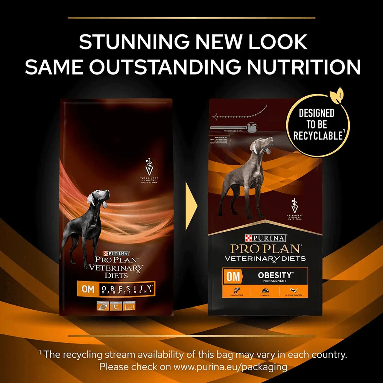 PURINA PRO PLAN VETERINARY DIETS OM Obesity Management can be fed long term to dogs prone to weight gain using the maintenance feeding quantities. In cases of hyperlipidaemia the recommended initial period of use is up to 2 months.