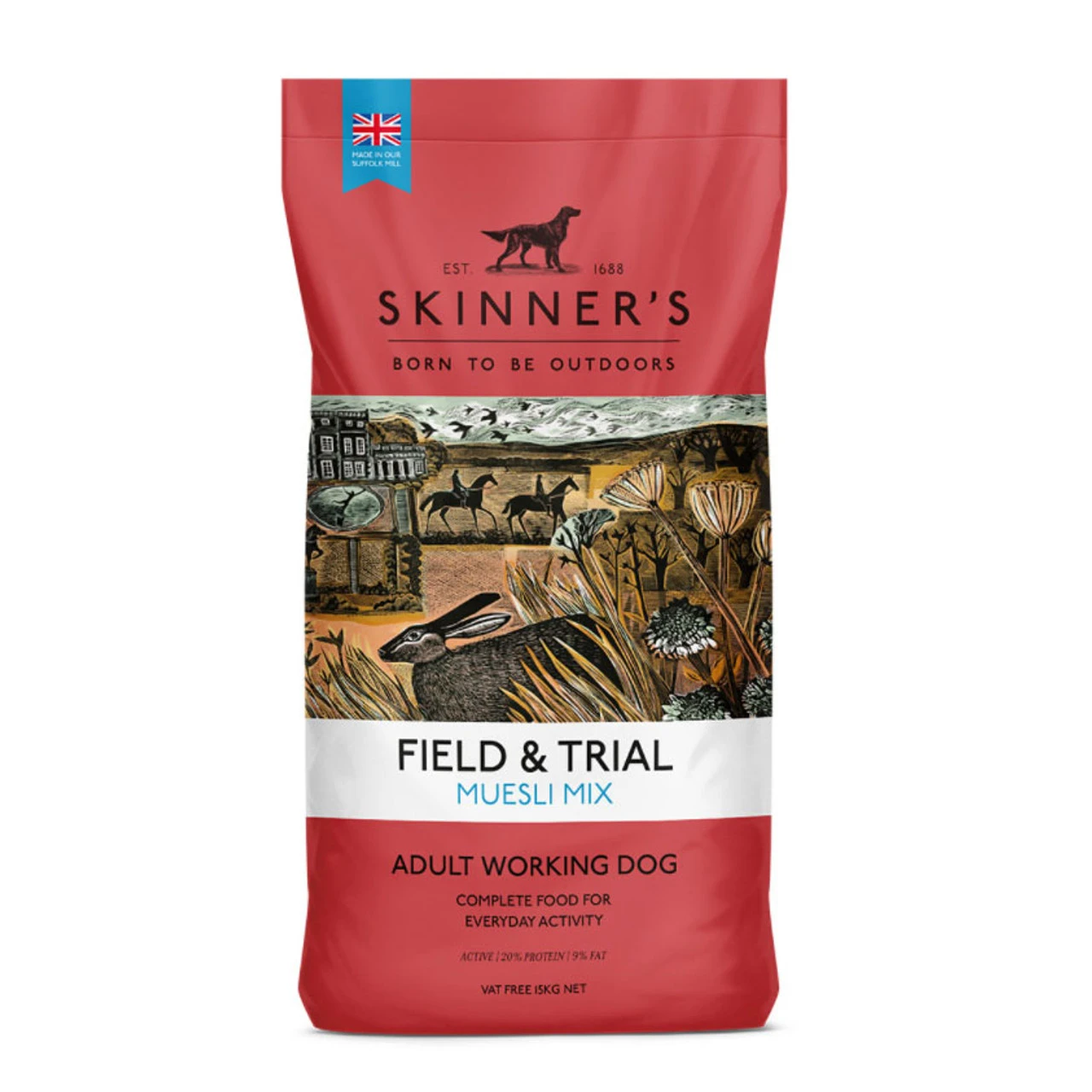 Field & Trial Muesli Mix has been carefully formulated to meet the energy requirements of adult dogs in moderate working conditions and is rich in carbohydrate to sustain energy and stamina and can help keep weight on your dog. Beef provides the high levels of protein needed for strong muscles, teeth and bones. Top quality oils give extra energy, whilst cereals, biscuits and peas boost the carbohydrate content guaranteeing the sustained stamina needed for a full day in the field. With a variety of tastes, textures and a delicious moist wheat glucose syrup coating, even a fussy dog will tuck in and enjoy a bowl of Field & Trial Muesli Mix.