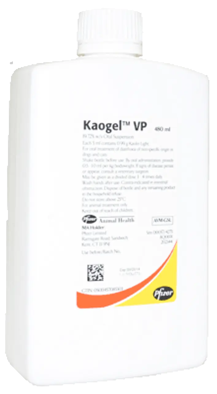 An off white oral suspension, containing 0.99 g Kaolin Light per 5 ml.